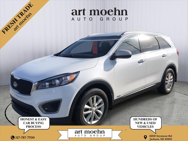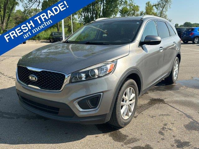 This <b>2016 Kia Sorento LX</b> has a Titanium Silver exterior and a Satin Black interior color. 66013 miles. Stock Number A1231A. You can connect with us by calling 517-787-7700. <b>IMPORTANT PACKAGE INFORMATION:</b><h4 class="vc_build_feature_name">Convenience</h4><ul class="vc_build_feature_item_list"><li> Cruise control maintains a preset vehicle speed; automatically increasing or decreasing throttle to maintain that speed.</li><li> The keyfob has the ability to remotely start the vehicle's engine.</li></ul><h4 class="vc_build_feature_name">In-car Entertainment</h4><ul class="vc_build_feature_item_list"><li> The primary monitor in the vehicle offers touchscreen control.</li></ul><h4 class="vc_build_feature_name">Safety and Security</h4><ul class="vc_build_feature_item_list"><li> The vehicle is equipped with a camera that displays an image of the area behind the vehicle on an interior display.</li><li> Brake assist senses panic braking from the speed of the brake pedal's travel and applies all available power brake boost.</li></ul><b>ADDITIONAL FEATURES:</b><b>If you decide to speak with one of our knowledgeable associates - please reference this Stock number A1231A. Connect with us now by calling .</b>This Kia has gone through our service process - You can request the full inspection at anytime. <b>HONEST & EASY CAR BUYING</b>Buying a vehicle can be a stressful experience and we understand that. That's why we've built our business on earning your trust and to make you feel financially protected. Through our trusted car-buying process you'll have access to full service reports and vehicle history checks. Furthermore we are a KBB brand top-rated dealer. A Cargurus 4-1/2 star dealer and we have over 1 000 Google reviews! Choose Art Moehn Auto Group today and come see how easy buying a car can be.