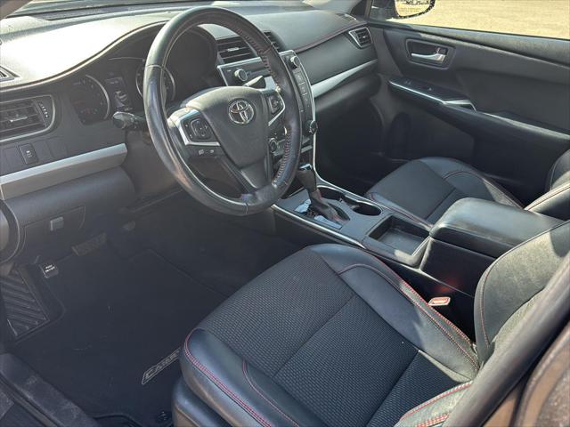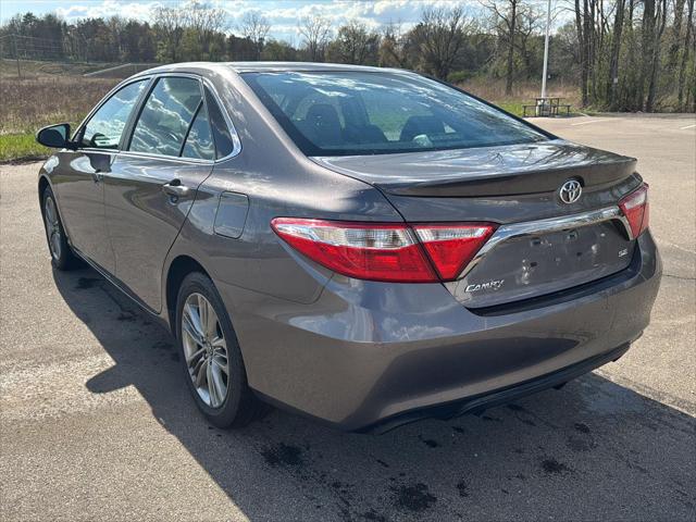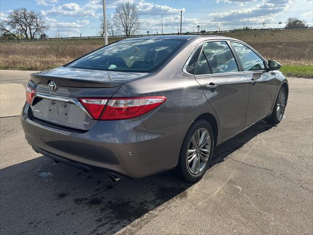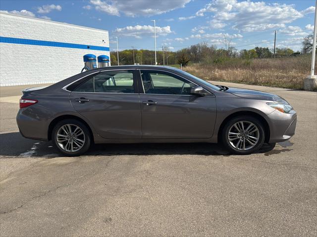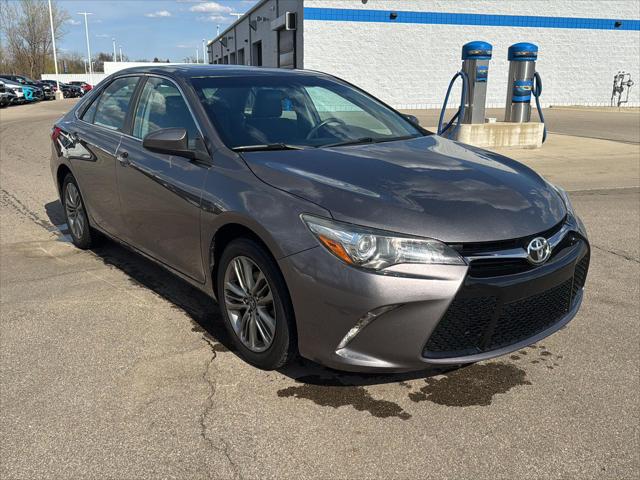 This <b>2016 Toyota Camry SE</b> has a Predawn Gray Mica exterior and a Black interior color. 88198 miles. Stock Number 71915A. You can connect with us by calling 517-787-7700. <b>IMPORTANT PACKAGE INFORMATION:</b><h4 class="vc_build_package_name">Four Season Floor Mat Package ($364 value)</h4><ul class="vc_build_package_item_list"><li>All Weather Floor Liners and Cargo Tray</li><li>Carpeted Floor Mats and Trunk Mat</li></ul><h4 class="vc_build_feature_name">Comfort</h4><ul class="vc_build_feature_item_list"><li> Heated seats offer cool weather comfort by warming the seat quickly before the air in the passenger compartment is fully warmed by the heater.</li></ul><h4 class="vc_build_feature_name">Convenience</h4><ul class="vc_build_feature_item_list"><li> Cruise control maintains a preset vehicle speed; automatically increasing or decreasing throttle to maintain that speed.</li></ul><h4 class="vc_build_feature_name">In-car Entertainment</h4><ul class="vc_build_feature_item_list"><li> The primary display in the vehicle offers touchscreen control.</li></ul><h4 class="vc_build_feature_name">Safety and Security</h4><ul class="vc_build_feature_item_list"><li> The vehicle is equipped with a camera that displays an image of the area behind the vehicle on an interior display.</li><li> Brake assist senses panic braking from the speed of the brake pedal's travel and applies all available power brake boost.</li></ul><b>ADDITIONAL FEATURES:</b><b>If you decide to speak with one of our knowledgeable associates - please reference this Stock number 71915A. Connect with us now by calling 517-787-7700.</b>This Toyota has gone through our service process - You can request the full inspection at anytime. <b>HONEST & EASY CAR BUYING</b>Buying a vehicle can be a stressful experience and we understand that. That's why we've built our business on earning your trust and to make you feel financially protected. Through our trusted car-buying process you'll have access to full service reports and vehicle history checks. Furthermore we are a KBB brand top-rated dealer. A Cargurus 4-1/2 star dealer and we have over 1 000 Google reviews! Choose Art Moehn Auto Group today and come see how easy buying a car can be.