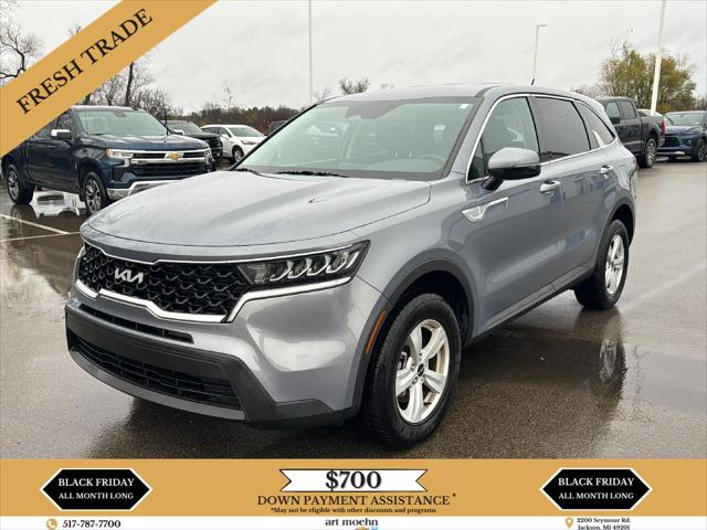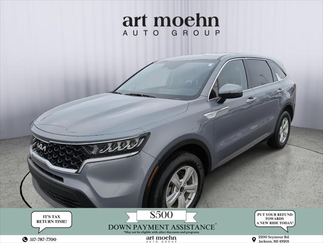 This <b>2023 Kia Sorento X-Line EX</b> has a Wolf Gray exterior and a Black interior color. 16176 miles. Stock Number 71388A. You can connect with us by calling 517-787-7700. <b>IMPORTANT PACKAGE INFORMATION:</b><h4 class="vc_build_feature_name">Safety and Security</h4><ul class="vc_build_feature_item_list"><li> The vehicle is equipped with a system that senses and then prepares the vehicle and/or occupants for an impending forward collision.</li><li> The vehicle constantly monitors the roadway in front of the vehicle and identifies and tracks pedestrians on an interior display. If the system determines a likely impact it will automatically take preventative steps to avoid hitting the pedestrian.</li><li> With this system the driver's hands must remain on the wheel at all times but can be removed briefly (for a few seconds) otherwise the vehicle will prompt the driver to put their hands back on the wheel.</li></ul><h4 class="vc_build_feature_name">Technology and Telematics</h4><ul class="vc_build_feature_item_list"><li> Without the need for a manufacturer specific app to be installed on the smart device the vehicle infotainment system can access and control functions of a smart device physically plugged-into the vehicle.</li><li> Apple CarPlay & Android Auto smart device wireless mirroring</li></ul><b>ADDITIONAL FEATURES:</b><b>If you decide to speak with one of our knowledgeable associates - please reference this Stock number 71388A. Connect with us now by calling 517-787-7700.</b>This Kia has gone through our service process - You can request the full inspection at anytime. <b>HONEST & EASY CAR BUYING</b>Buying a vehicle can be a stressful experience and we understand that. That's why we've built our business on earning your trust and to make you feel financially protected. Through our trusted car-buying process you'll have access to full service reports and vehicle history checks. Furthermore we are a KBB brand top-rated dealer. A Cargurus 4-1/2 star dealer and we have over 1 000 Google reviews! Choose Art Moehn Auto Group today and come see how easy buying a car can be.